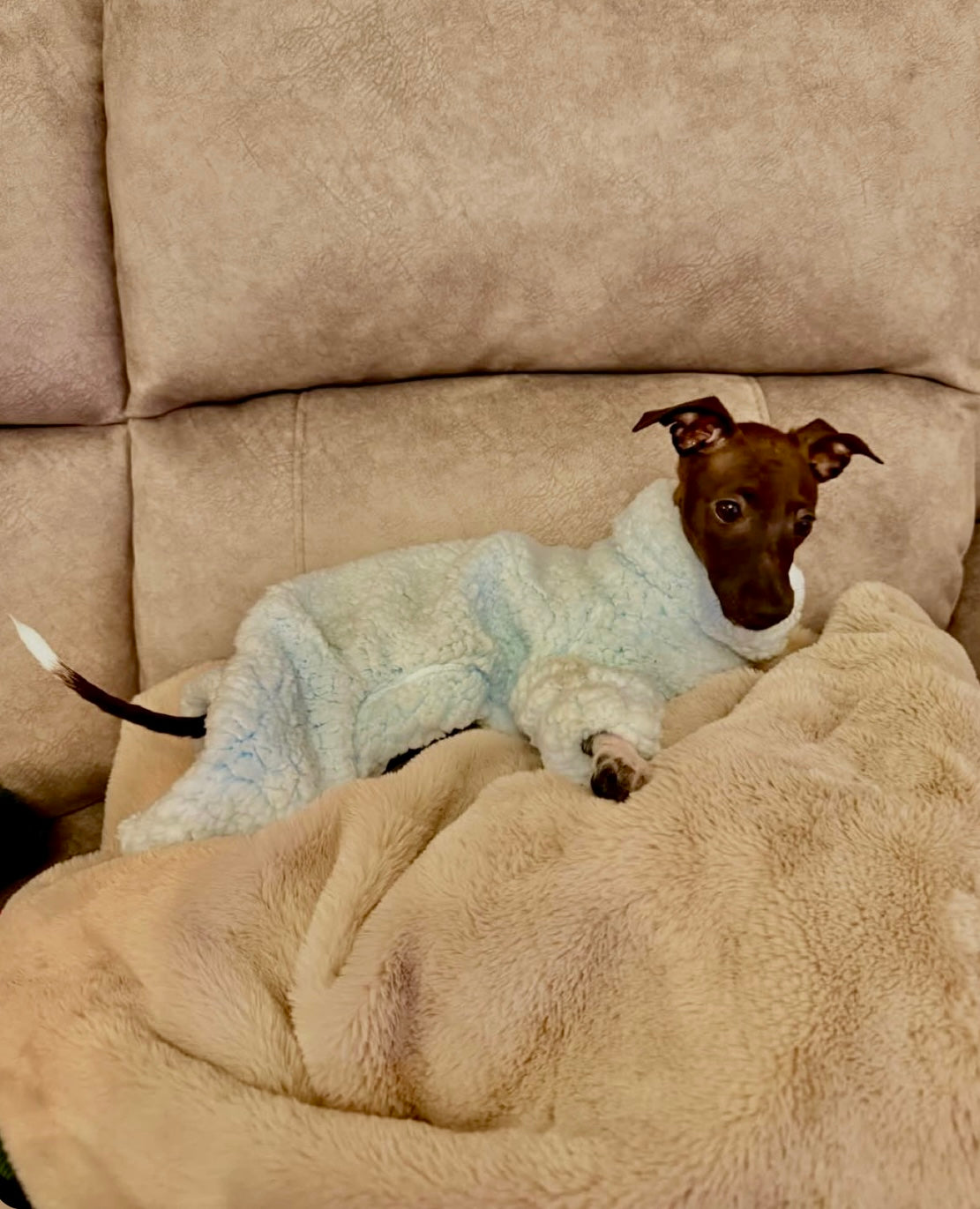 Made from the most wonderfully soft cuddle fur, this suit will keep your hound warm and cosy all winter. The photos don't do it justice how soft this material is whilst maintaining stretch and breathability.