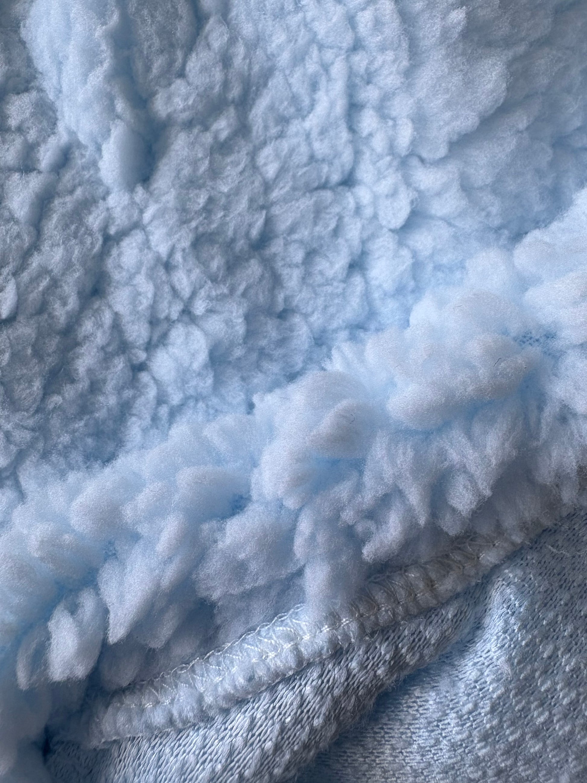 Our IggySuitsLondon 'Cuddle Fur Fleece' Iggy Suit in baby blue.