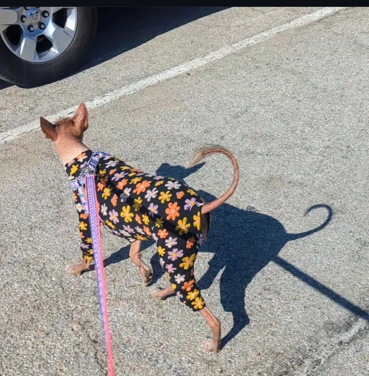 Made from soft and stretchy floral sweatshirt material on the outer which is lined with soft furry fleece on the inner to be soft on your dogs skin. A thick, warm and cosy addition to your hounds wardrobe.