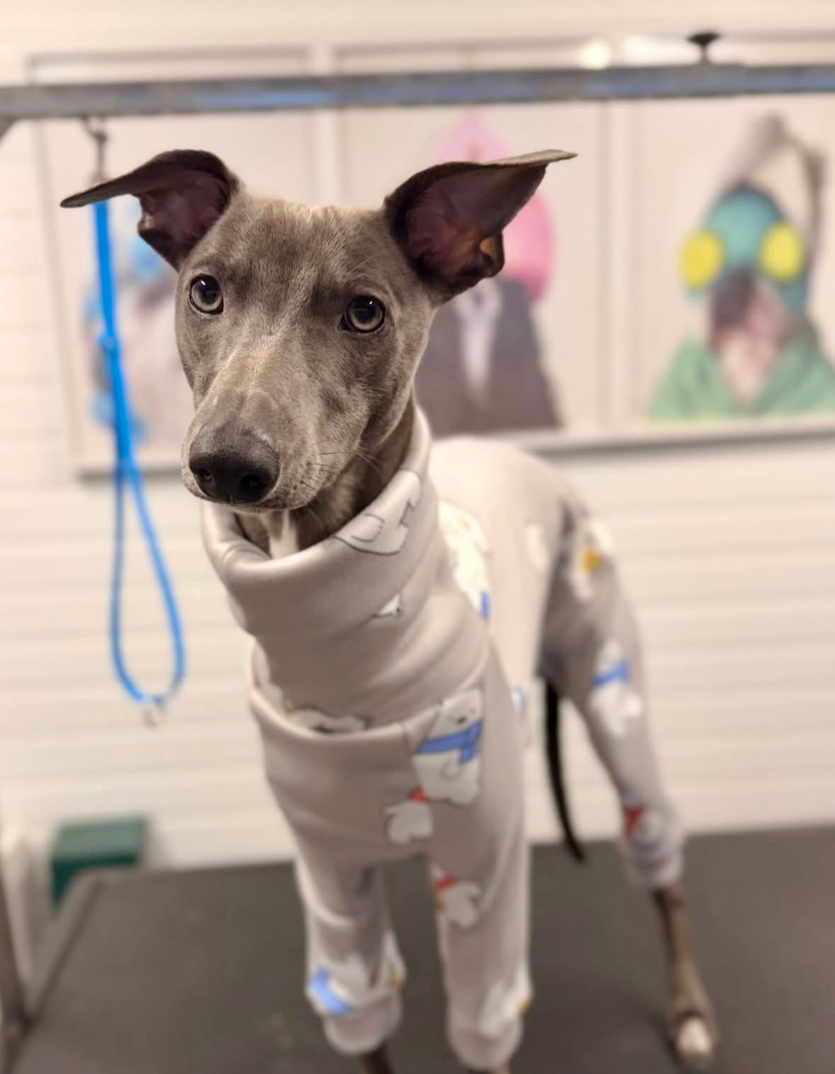 - The design offers full-body coverage with long sleeves that protect their legs without restricting movement. The high neckline and ribbed cuffs add extra warmth around the neck and limbs and ensures your dog stays comfortable during walks or lounging at home.