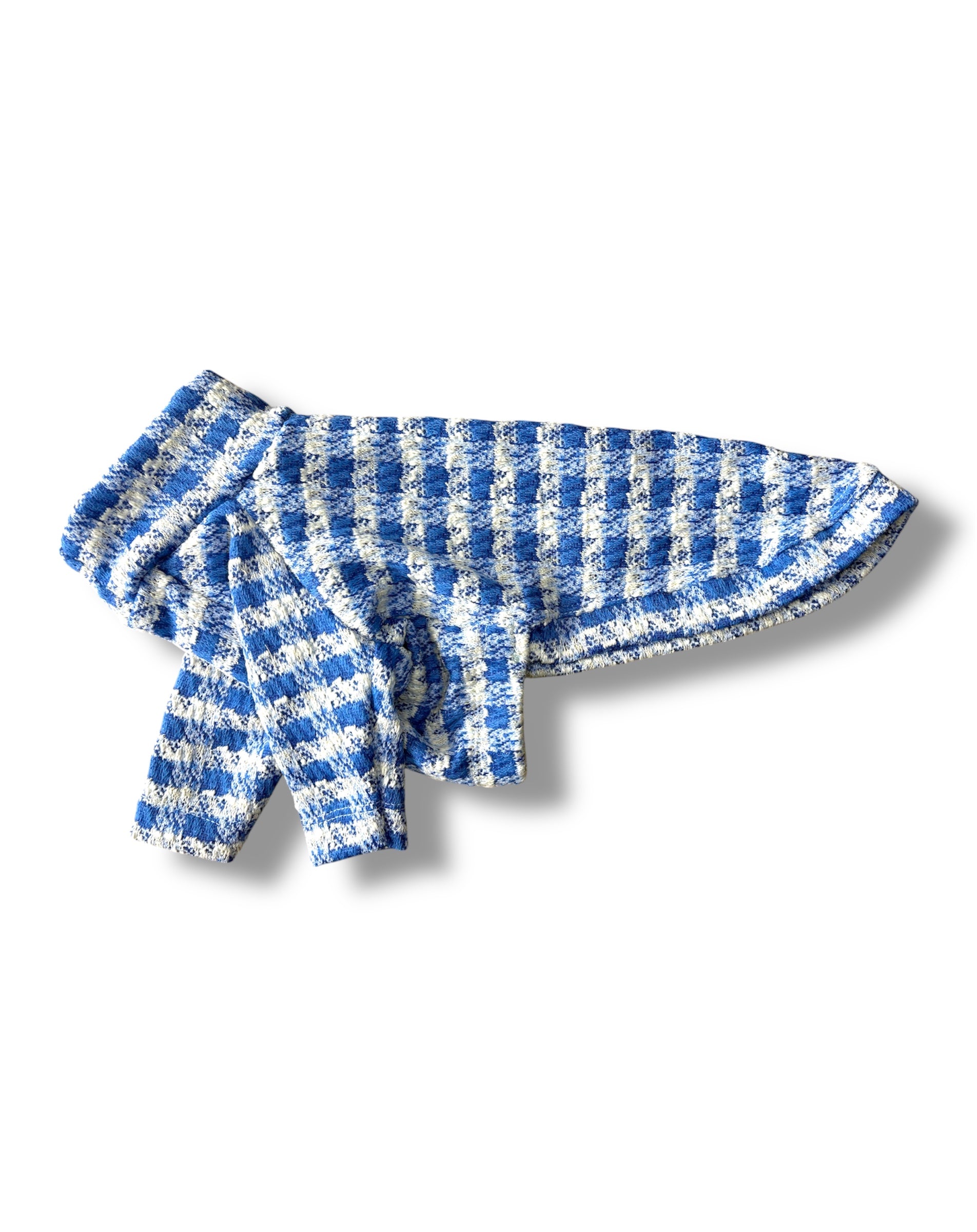 The perfect runway Iggy Suit for your fashion-forward dog. Chanel inspired chequered pattern with a subtle glisten of gold thread woven throughout.