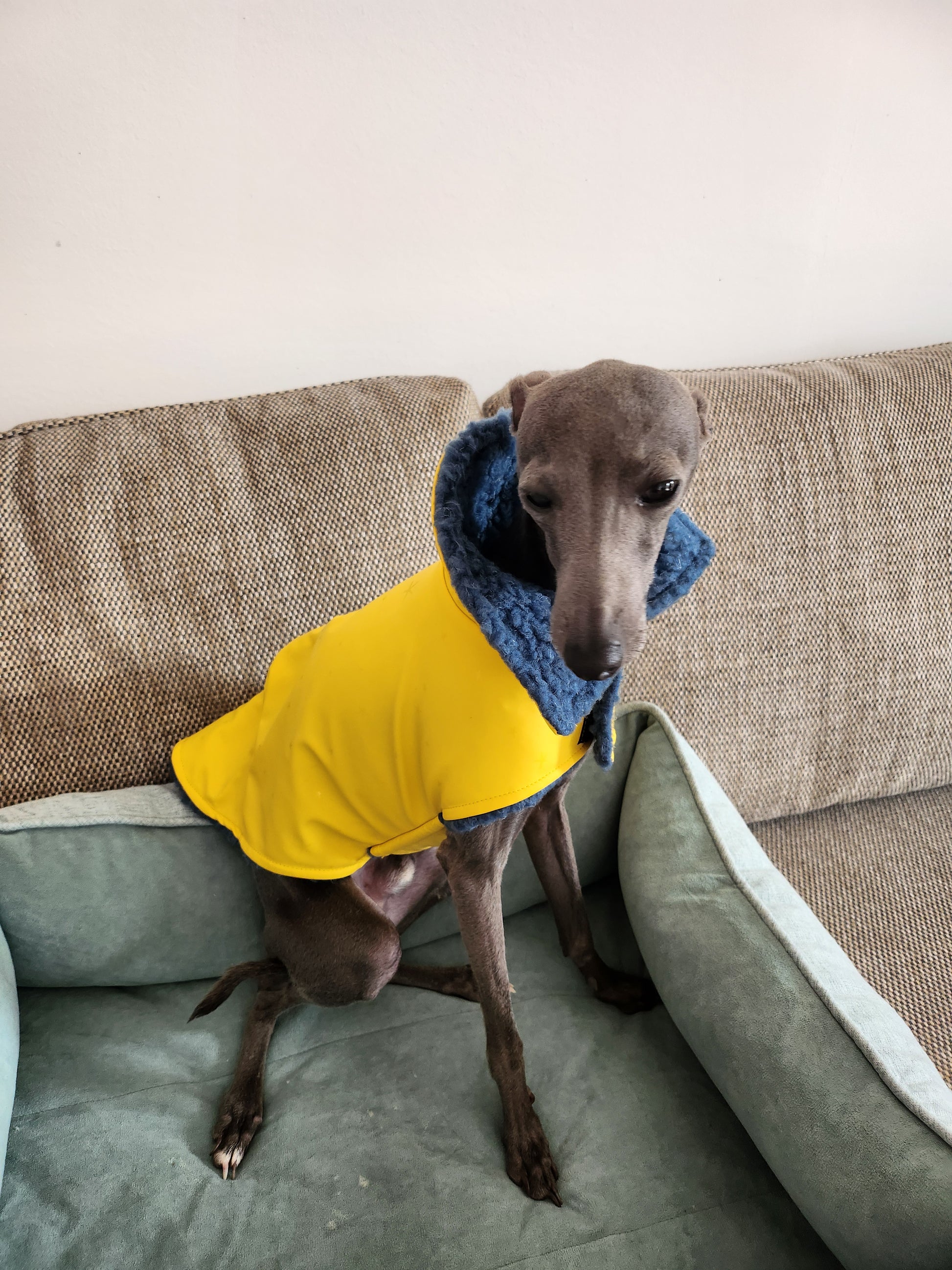 - Outer: Lightweight rubberised raincoat material featuring yellow starfish