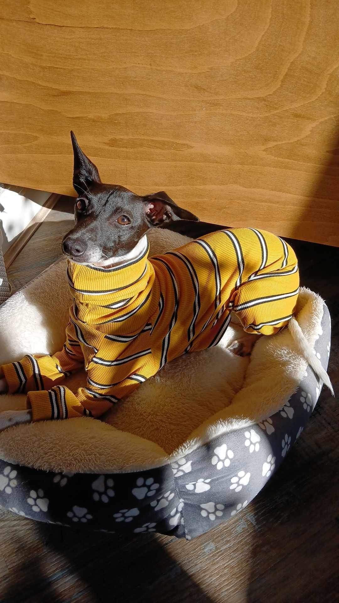 This ribbed jersey suit offers a fun and bright look with full-body coverage. The four-legged design is tailored to fit their slim, athletic frame while allowing for plenty of movement due to the stretch of the fabric.