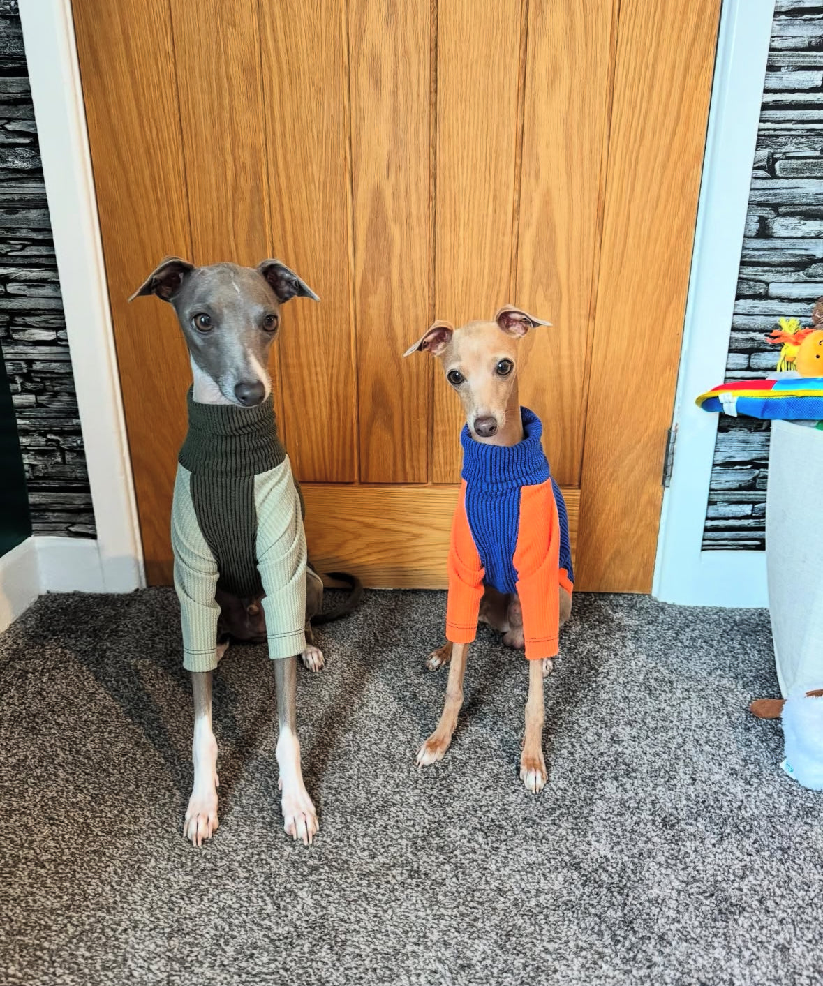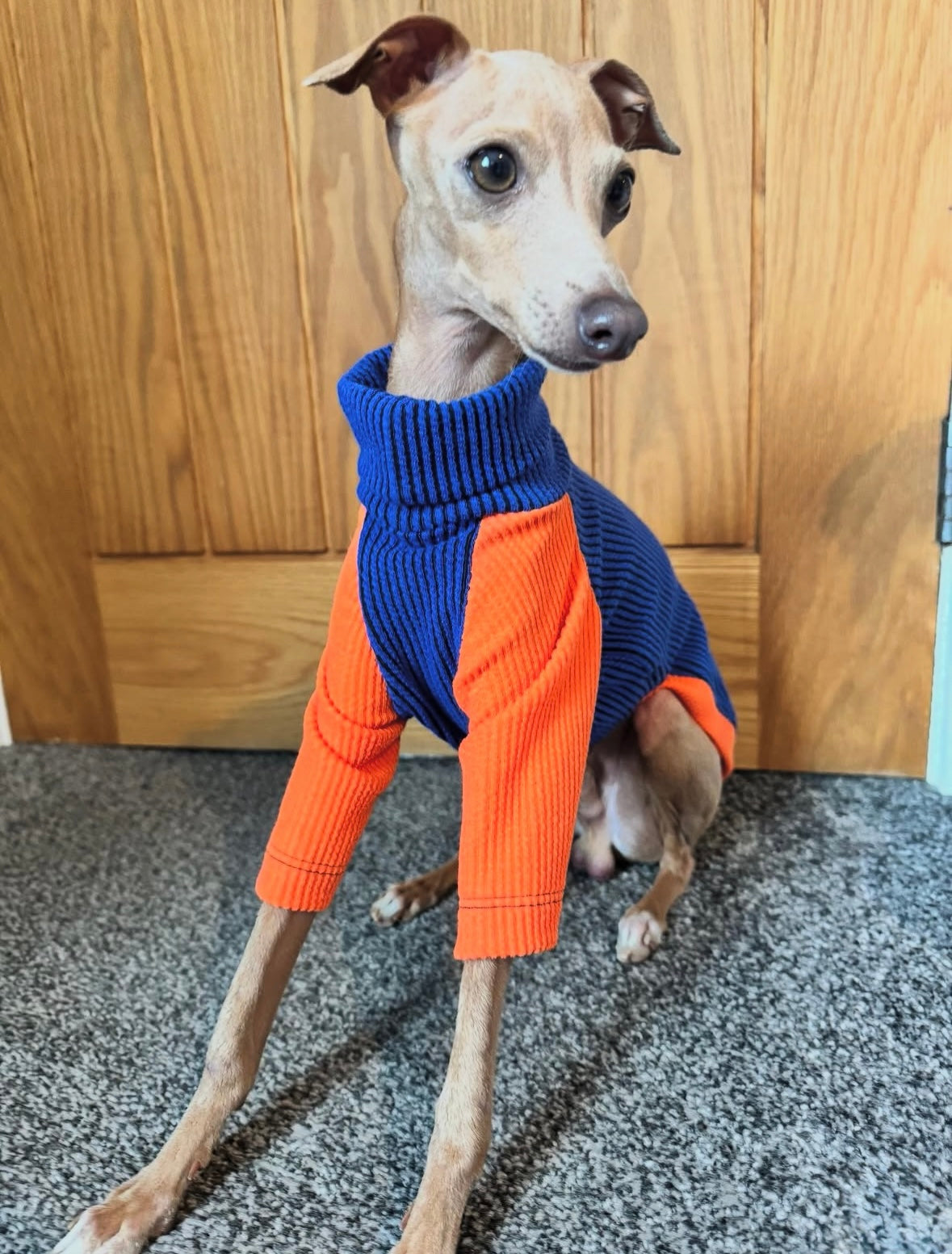 Our Iggy Suits two-legged t-shirt "Orangina" in fizzy blue and orange.