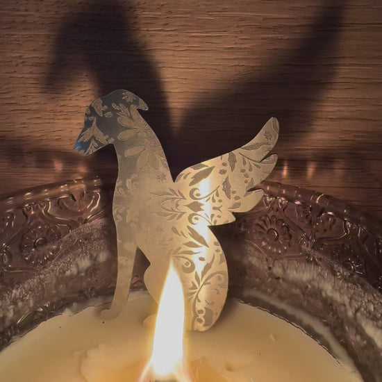 Simply stick the thin aluminium stake into your candle or plant pot, and you have a hound to sit watch over your home.